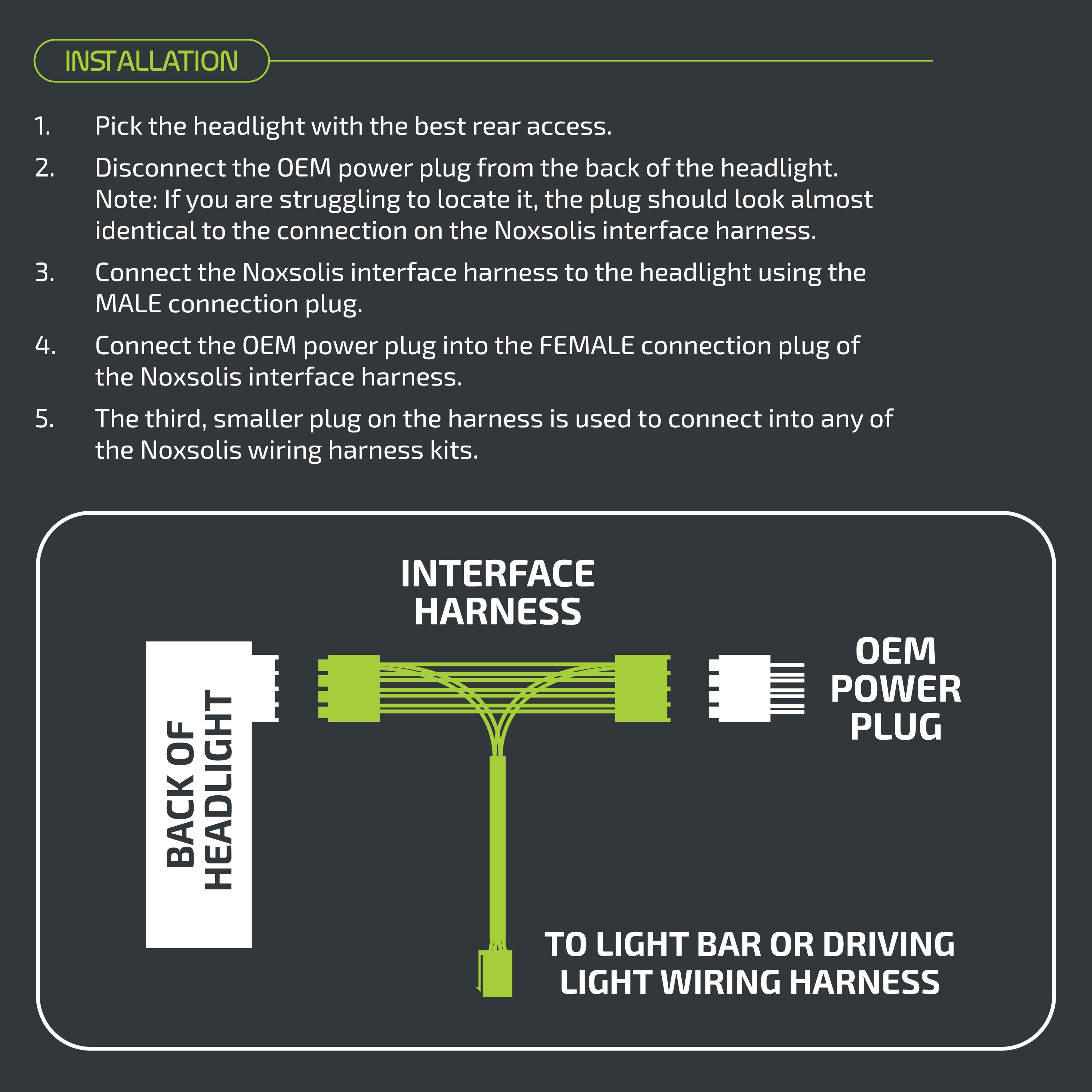 The Noxsolis NX275 is a headlight interface harness designed for the Nissan Patrol Y62 with factory headlights (6 PIN).