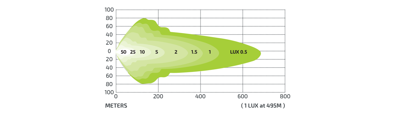 Combo Beam Pattern: Designed to provide a wide spread immediately in front of the vehicle, complemented by a focused beam extending down the road, enhancing overall road illumination.