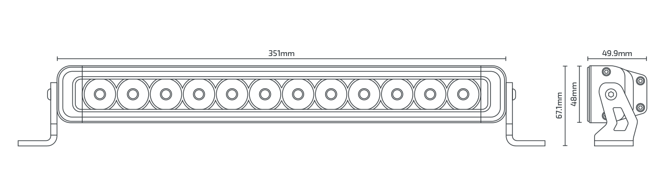 Mounting Flexibility: Comes with both side and bottom mounting brackets, allowing for versatile installation on various vehicle types, including bull bars, nudge bars, roof racks, or number plate brackets.